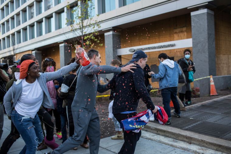 A supporter of Donald Trump is attacked by anti-Trump demonstrators in Black Lives Matter Plaza near the White House.