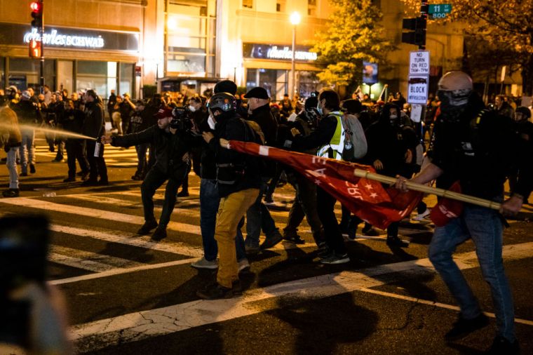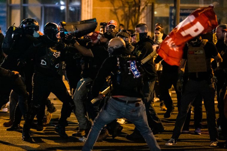 Members of Antifa and Proud Boys clash in the middle of the street following the “Million MAGA March.”
