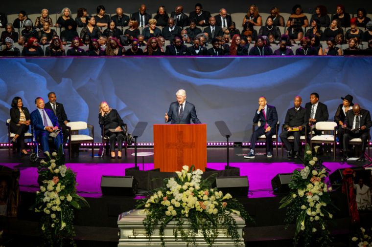 HOUSTON, TEXAS – AUGUST 01: Former President Bill Clinton speaks during Congresswoman Sheila Jackson Lee’s funeral service at the Fallbrook Church on August 01, 2024 in Houston, Texas. Members of the community and elected officials gathered to honor the life of the late U.S. Rep. Sheila Jackson Lee. Vice President Kamala Harris among other elected officials are expected to be in attendance for the funeral, where she will deliver remarks and the eulogy. (Photo by Brandon Bell/Getty Images) color image,photography,horizontal,usa,topix,texas,houston – texas,politics,funeral,gulf coast states,bill clinton,politics and government