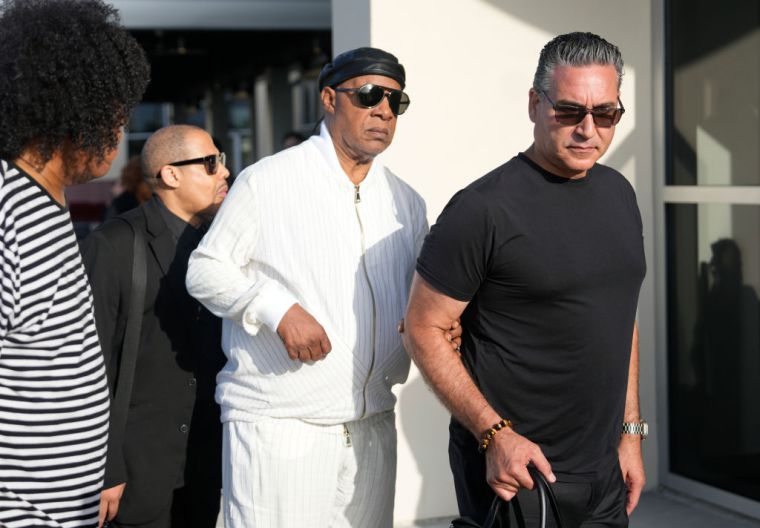 HOUSTON, TEXAS – AUGUST 1: Stevie Wonder is escorted by Everett Faulk, right, into Fallbrook Church, 12512 Walters Rd., for the funeral of Congresswoman Sheila Jackson Lee Thursday, Aug. 1, 2024, in Houston. (Melissa Phillip/Houston Chronicle via Getty Images) color image,photography,horizontal,usa,sport,texas,houston – texas,funeral,gulf coast states,human interest,stevie wonder,sheila jackson-lee,obituary,sports official,member of congress