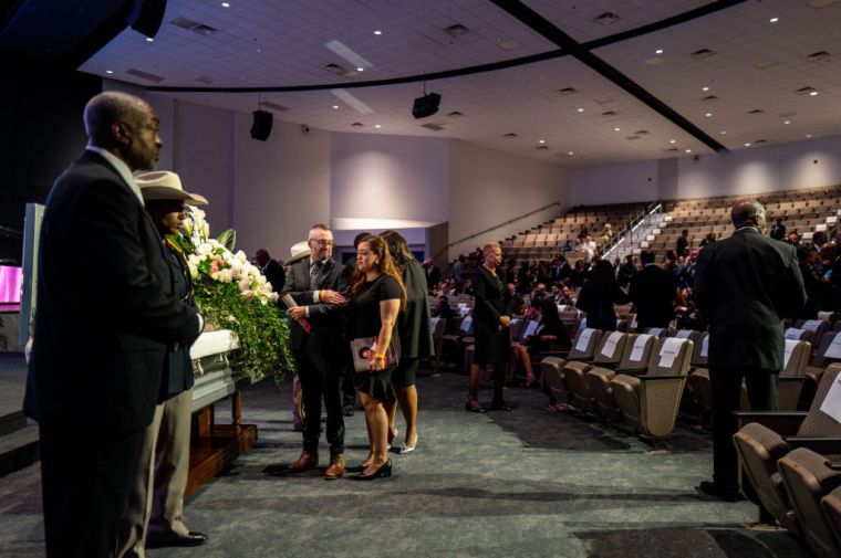 HOUSTON, TEXAS – AUGUST 01: People mourn the death of Congresswoman Sheila Jackson Lee during her funeral service at the Fallbrook Church on August 01, 2024 in Houston, Texas. Members of the community and elected officials gathered to honor the life of the late U.S. Rep. Sheila Jackson Lee. Vice President Kamala Harris among other elected officials are expected to be in attendance for the funeral, where she will deliver remarks and the eulogy. (Photo by Brandon Bell/Getty Images) color image,photography,people,horizontal,usa,death,texas,houston – texas,politics,funeral,gulf coast states,sheila jackson-lee,politics and government,member of congress